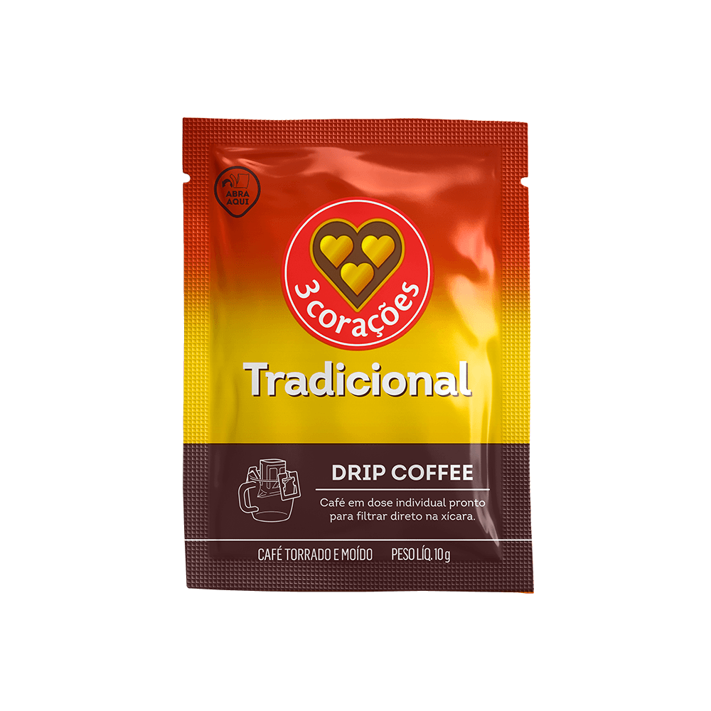 O tradicional café 3 CORAÇÕES em dose individual, pronto para filtrar direto na xícara, em qualquer lugar. Drip coffee é um café especial em dose individual, pronto para você filtrar direto na xícara a qualquer hora ou lugar. Drip coffee é sinônimo de frescor, praticidade e experiência. Nosso Drip Coffee conta com tecnologia japonesa que garante o frescor e preservação do sabor e aroma, além de utilizar moinho italiano com regulagem precisa para garantir a moagem perfeita de acordo com a torra do grão, respeitando um alto padrão de qualidade na extração que acontece direto na sua xícara.